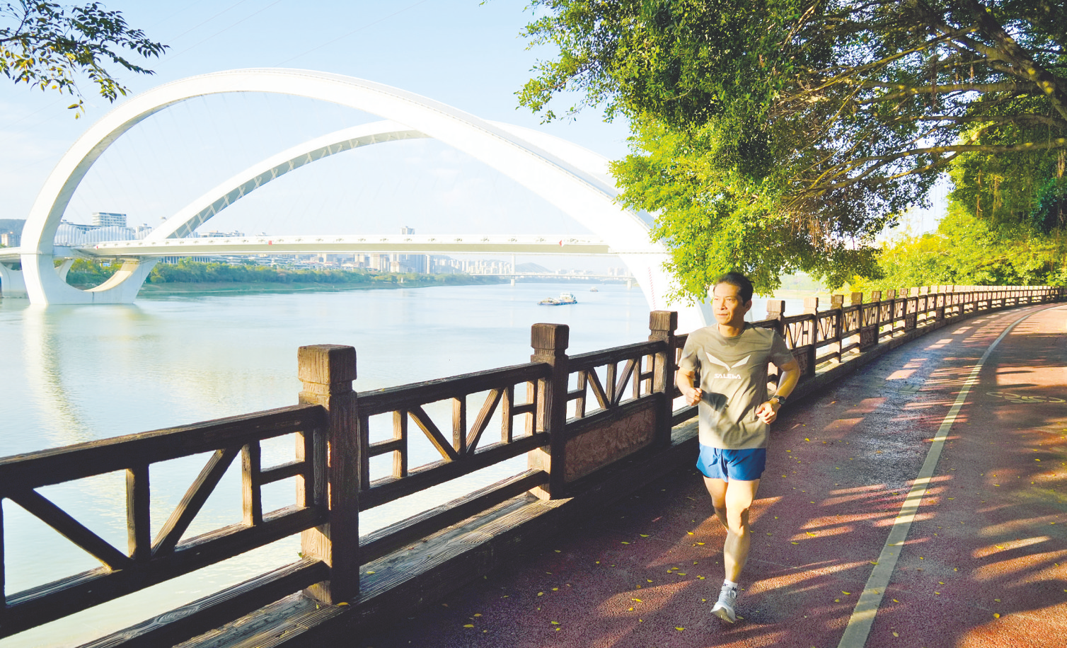 市民在秀美邕江畔晨跑。记者 宋延康 摄