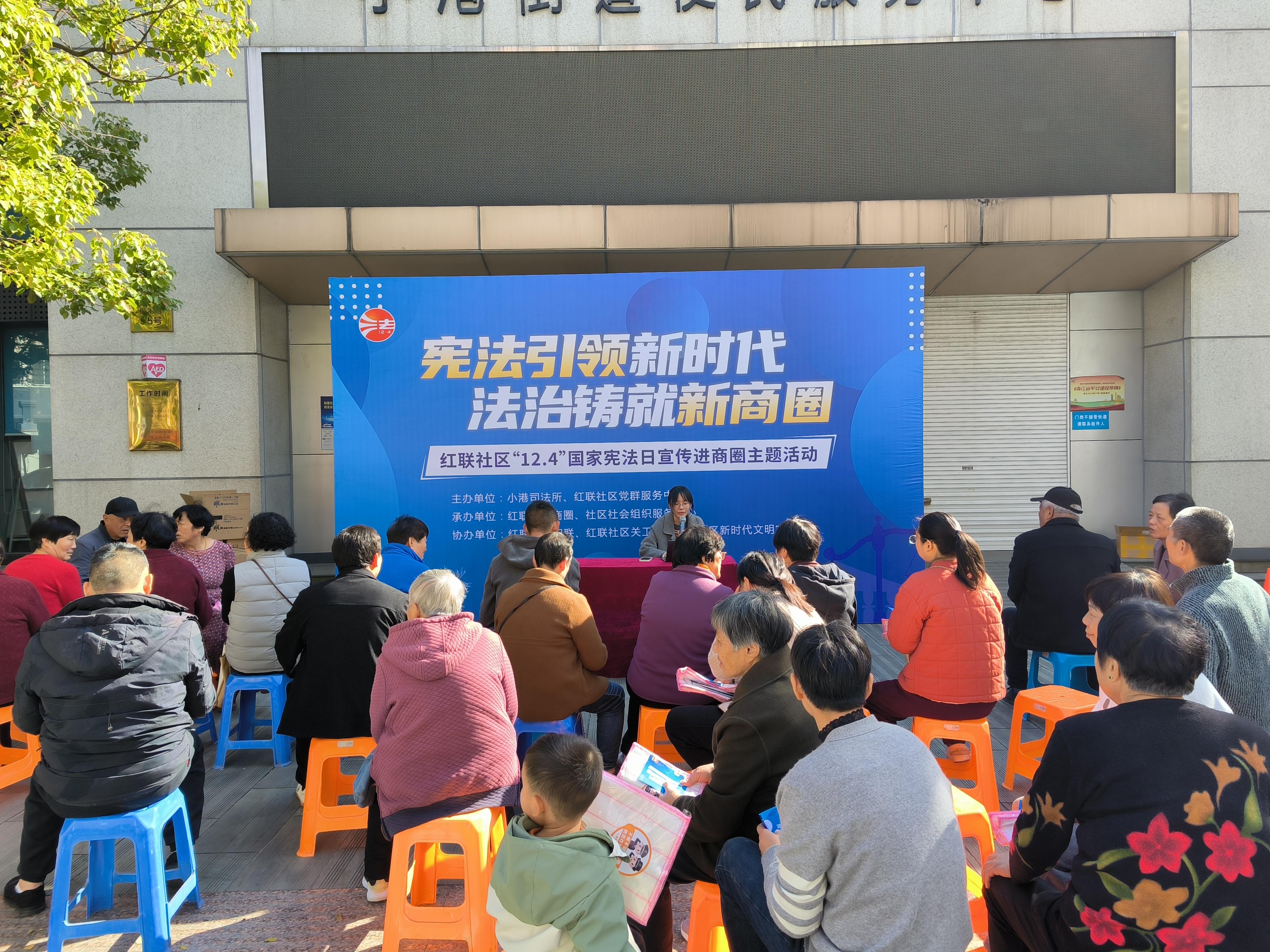 在小港街道的红联社区,“宪法引领新时代,法治铸就新商圈”主题活动将游园会开进商圈,商户们在“宪法投投乐”“宪法套圈”等游戏中轻松学法。