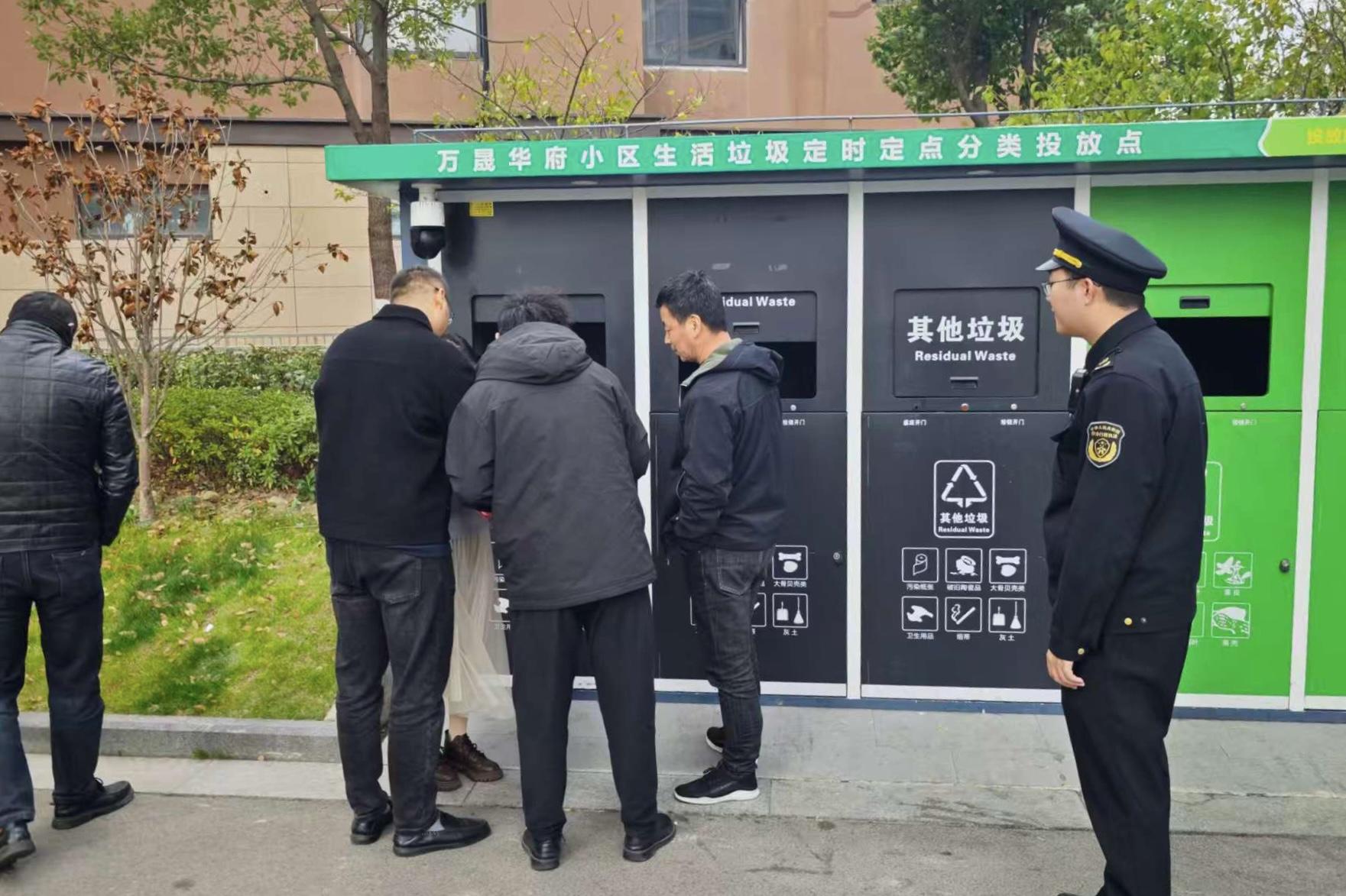 图为执法人员开展垃圾分类管执联动“清源行动”