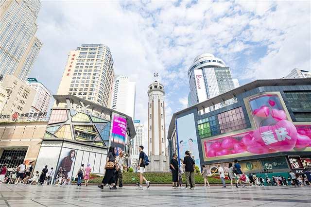 这样繁华的景象,在解放碑中央商务区,可谓时时有,处处有。这个年均吸引超2亿人次的商圈,正全力打造西部首个GDP、社零“双千亿”商圈,消费竞争力排名全国前列。