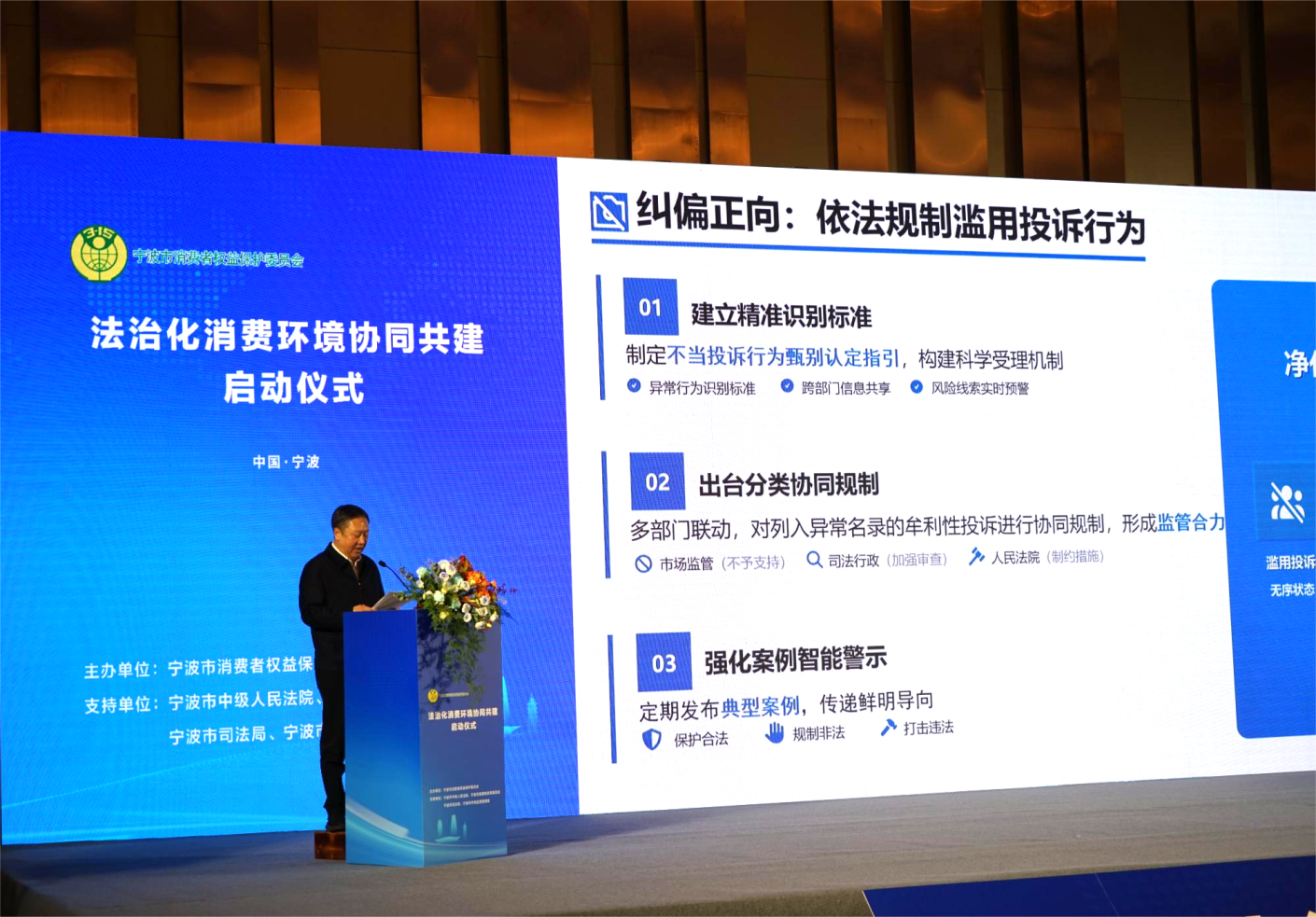 1月6日上午,“法治化消费环境协同共建启动仪式”在浙江宁波举行。活动由宁波市消费者权益保护委员会主办,标志着宁波在构建跨部门、全链条消费环境治理新格局上迈出关键一步。