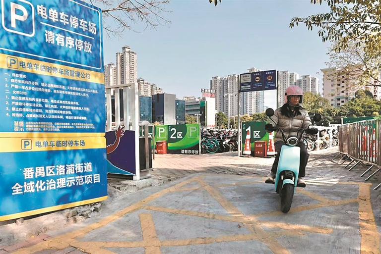 “电动自行车普及后,地铁口非机动车停放乱象日益突出。洛浦街在市区相关部门支持下,选取南浦站A口作为整治示范点,将原有机动车停车场调整改造为非机动车专用停车场,划分充电、消防、换乘、临时停靠等8大功能区,新增1700个车位,有效解决了该站点停车难、出入口堵塞的问题。”番禺区洛浦街综合行政执法队队长邢兆波介绍:“作为属地责任单位,我们严格落实‘市级统筹、部门联动、属地落实’工作要求,主动联合相关部门推进南浦站地铁站口环境整治,联动相关单位盘活闲置地块,助力建设2个智能停车场,在南浦站A、B口共新增3300个车位,在B口设置外卖专用停放区,A口加装197米隔离护栏,有效规范了停放秩序。”