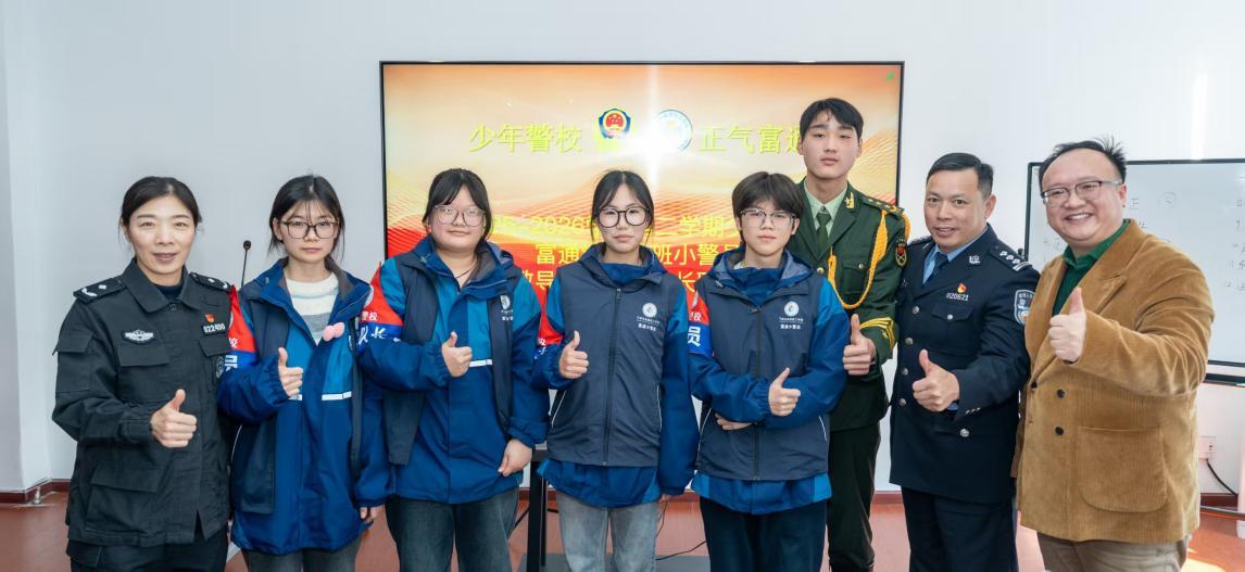 宁波市富通技工学校执行校长毛董杰在总结讲话中指出,“驻班小警员”的身份既是一份荣誉,更是一份责任。希望新一届小警员的领导集体和所有组织成员能立足岗位、传承精神,在日常学习生活中带头遵规守纪、服务同学、勇于担当,把参与校园治理的实践经历转化为个人成长的重要养分,在一点一滴的实际行动中树立规则意识、强化责任观念,用实际表现擦亮“少年警校”的育人品牌。