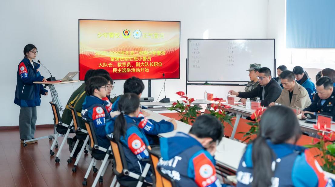 1月15日上午,浙江省宁波市“少年警校”富通教学点举行了新一届德育法治“驻班小警员”的换届选举活动。宁波市公安局巡特警支队相关领导、宁波市富通技工学校领导班子成员现场指导观摩。