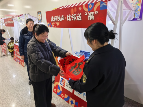 “平安燃情暖万家,文明养犬睦邻舍……”近日,在浙江省宁波市鄞州区下应街道海创社区寒松路地铁站通道内,鄞州区综合行政执法局下应中队开展了“法应民生,比邻送福”普法宣传活动。执法队队员现场书写法治新春对联与福字赠予过往群众,并向群众开展普法宣传,将法治寓意于民俗,将关怀送至群众身边。