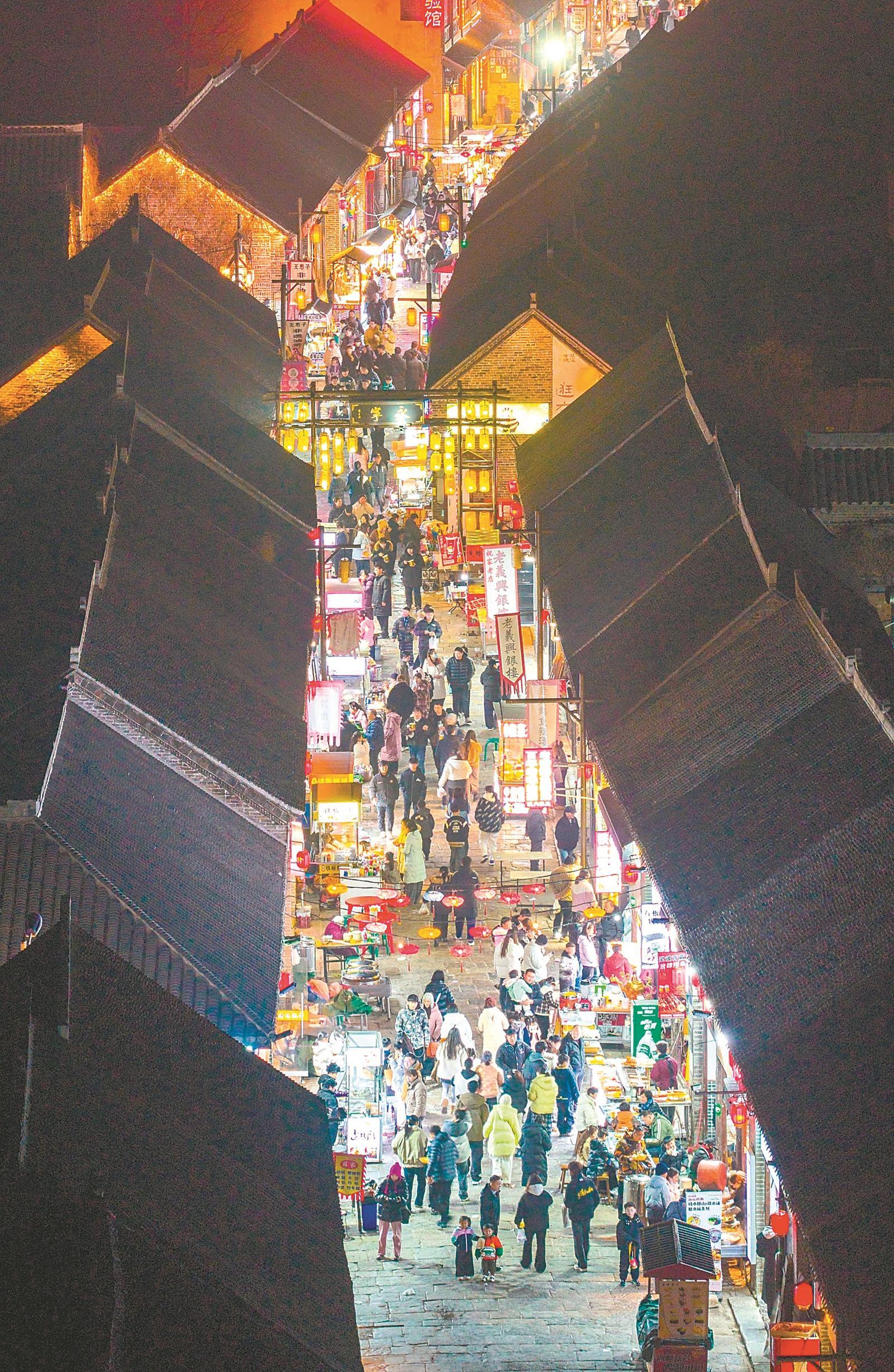 2月1日,淮北市濉溪县,游客在石板街逛古城、品美食、打卡游玩。张伟 摄