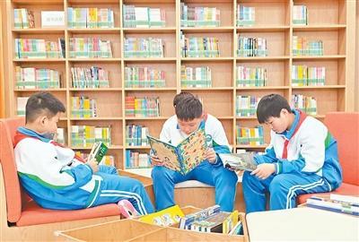 雄安新区北沙小学学生在图书馆内阅读。记者 张艺开摄