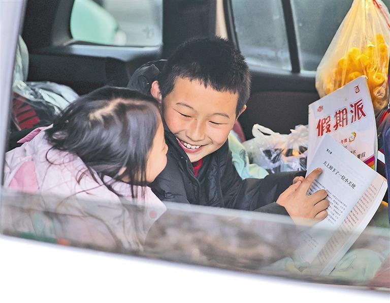 2月22日,甘肃省定西服务区内,小朋友在旅途间隙阅读。侯崇慧摄(中经视觉)