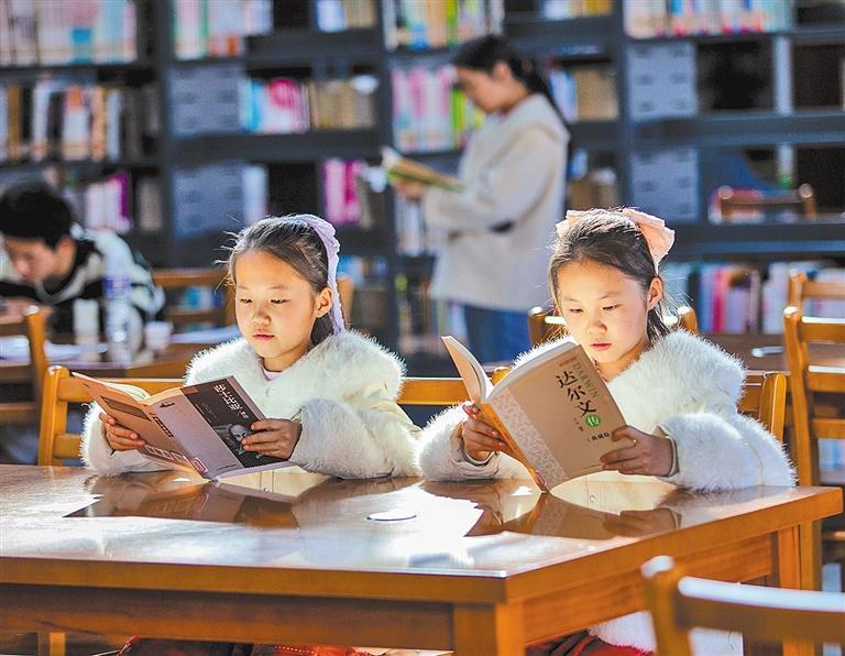 2月20日,小朋友在山东省淄博市高青县图书馆内看书。张维堂摄(中经视觉)