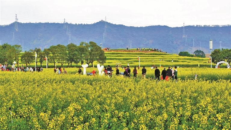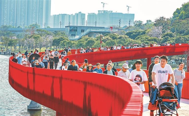 大梅沙的海浪轻抚金色沙滩,把欢笑卷进浪花;梧桐山深处,吊钟花已开满山坡,人们拾级而上,穿行于青山绿水间;深圳湾的栈道上,人流与候鸟同向而行;虹桥公园里,4公里“红飘带”蜿蜒,行人漫步虹桥之上,祈愿新年“行鸿运”;光明田园里,油菜花铺成金色的海,支一顶帐篷,煮一壶清茶,欢声笑语回荡。