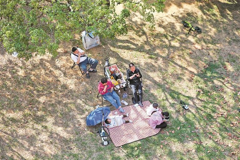 在深圳湾公园日出剧场,众多市民陪着家人休憩游乐,共享美好假日时光。