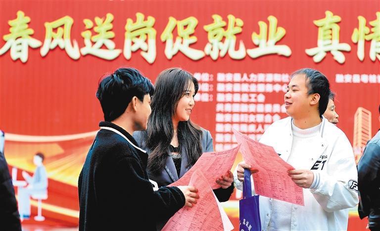 2月25日,广西壮族自治区柳州市融安县长安广场,求职者在了解招聘岗位信息。覃庆和摄(中经视觉)