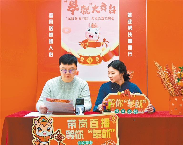 2月26日拍摄的重庆市万盛经开区2026年“春风行动”暨就业援助季专场招聘会现场。招聘会采取“线下岗位招聘+线上直播带岗”方式,多渠道满足用工企业和求职者的需求。王泸州摄(中经视觉)