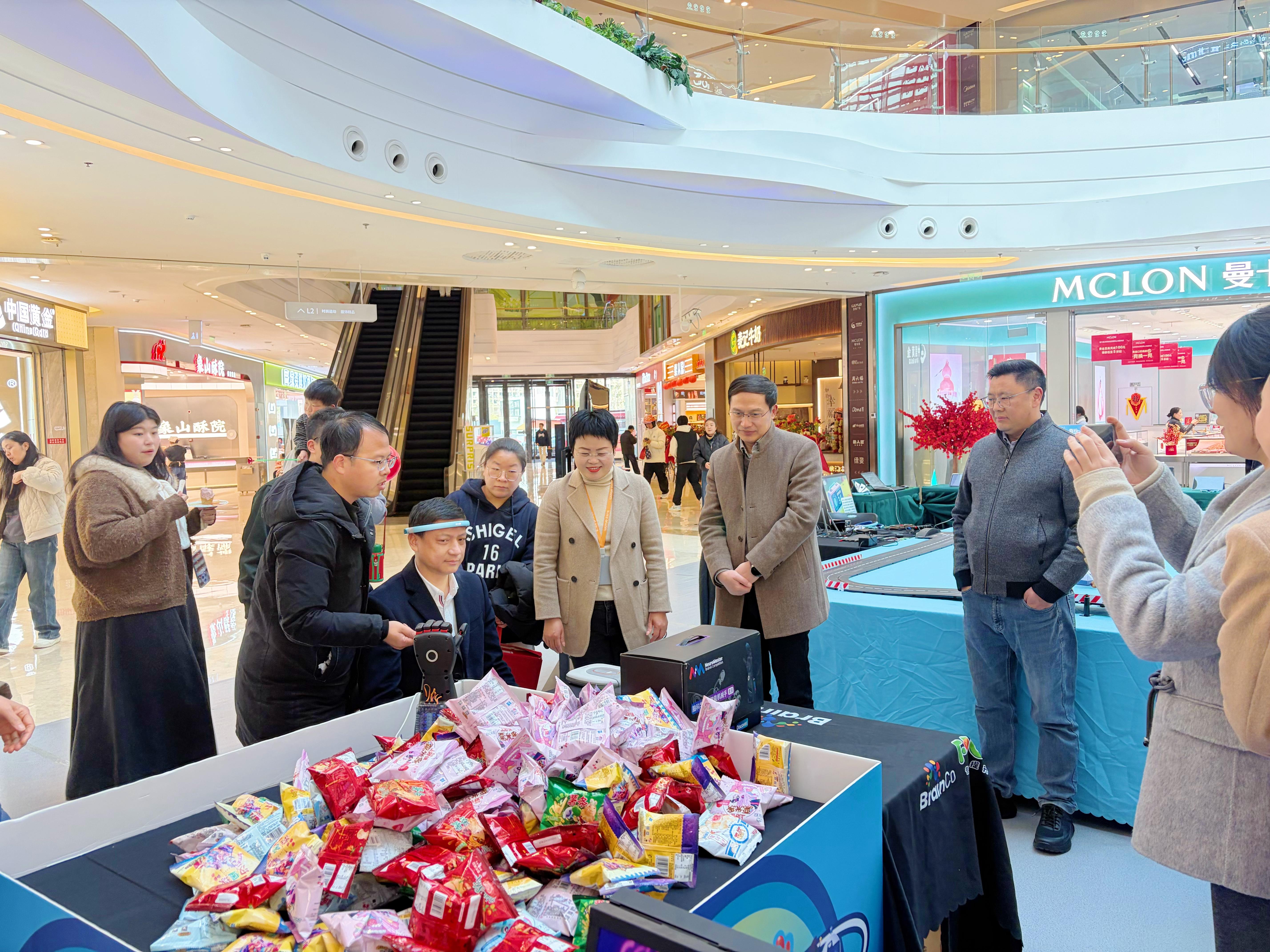 科技赋能消费体验是本次嘉年华的一大特色。活动期间,科技互动专区持续开放,脑控赛车、脑控爆米花、智能机械手等13项“脑动科技”项目吸引众多市民参与,启动当日更有机器人、机器狗现场互动合影,让参与者在感受“意念控制”魅力的同时,直观体会“科技让消费更美好”的内涵。