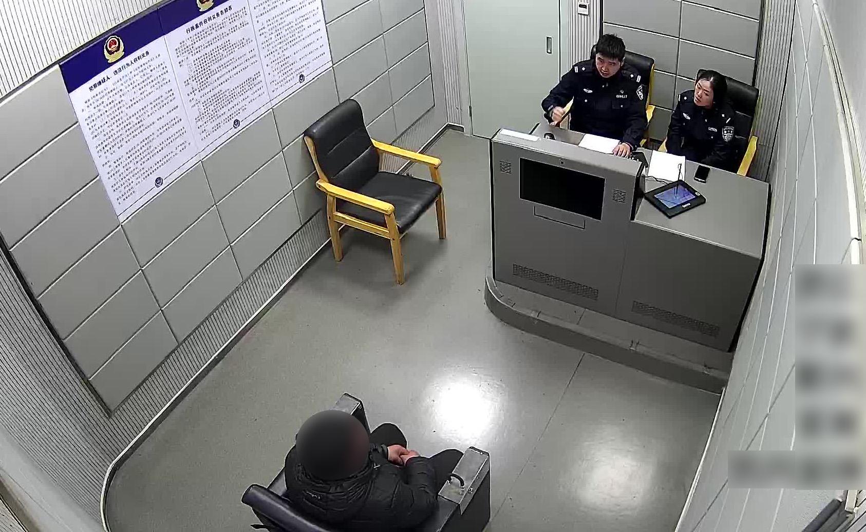 图为民警询问犯罪嫌疑人
