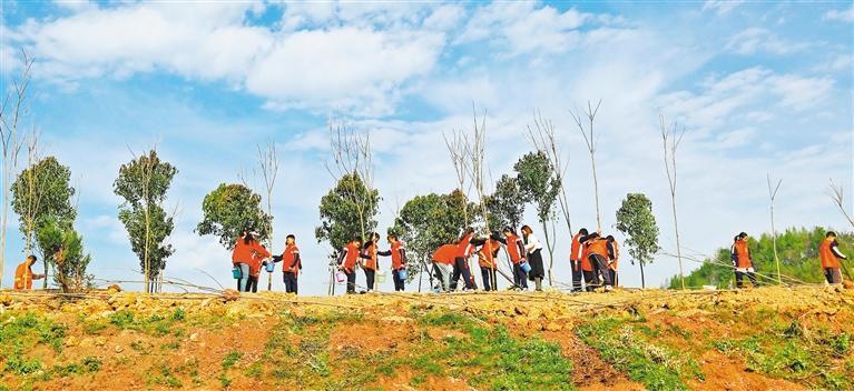 3月12日,重庆市万盛经开区开展2026年春季义务植树活动,人们在荒山坡上种下香樟、乌桕等树苗。王泸州摄(中经视觉)