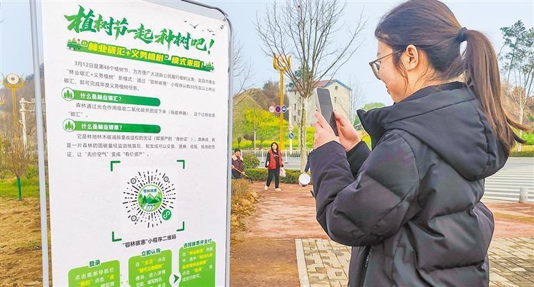 3月10日,湖北省宜昌市秭归县市民线上购买林业碳票。当地推出“林业碳汇+义务植树”模式,让市民实现手机“种碳”。周仕伟摄(中经视觉)