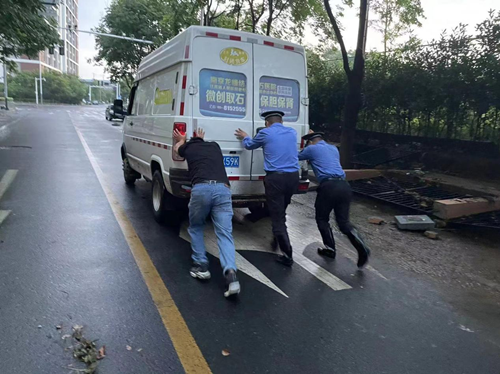 6月24日凌晨12时多,全街突降暴雨,指挥部组织人员冒雨巡查,时刻关注雨情、水情、汛情。经过连续3小时的降雨,部分易淹积水点出现积水情况,执法队员、防汛突击队员等,按照责任分工对积水路段、小区开展排水作业,设置警示标志30余处,临时封闭道路积水区域,指挥车辆提前绕行,并联系区市政部门到场支援。24日早晨7时,经过全体人员彻夜不眠不休的共同努力,基本完成道路街巷积水和小区的防汛抢排工作,确保市民第二天顺利通行。
