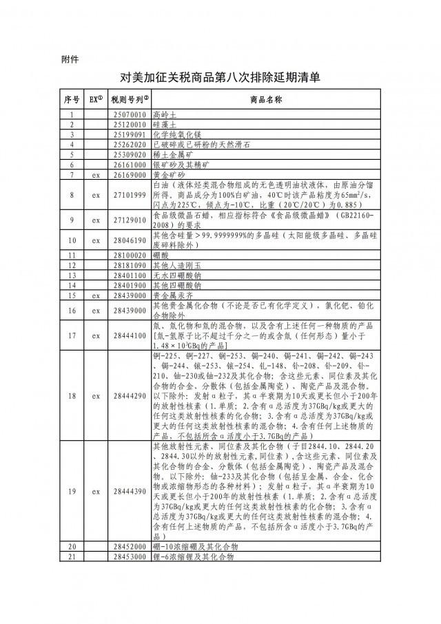 自2022年7月1日至2023年2月15日,对附件所列商品,继续不加征我为反制美301措施所加征的关税。
