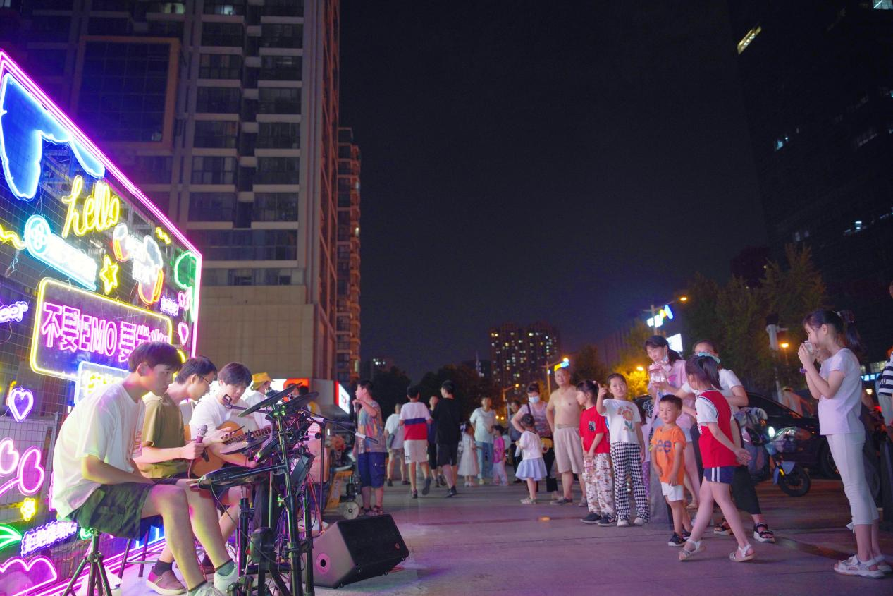 近日,夜幕降临后的华润苏果天元东路店,显得格外热闹。广场上小吃摊位、后备箱摊位、套圈、扎气球、歌手驻唱等项目吸引了不少消费者驻足。现场售卖的章鱼小丸子、辣炒年糕、水果捞、榴莲、烤香肠、凉粉、凉皮、啤酒、铁板鱿鱼、小龙虾等各类美食,得到了不少“吃货”的好评。现场播放的露天动画电影,更是深受小朋友们的喜爱。此外,该门店还邀请了知名乐队来到现场驻唱,并在网络平台直播。“发光夜市”浓浓的烟火气息,引来不少直播观众打CALL。