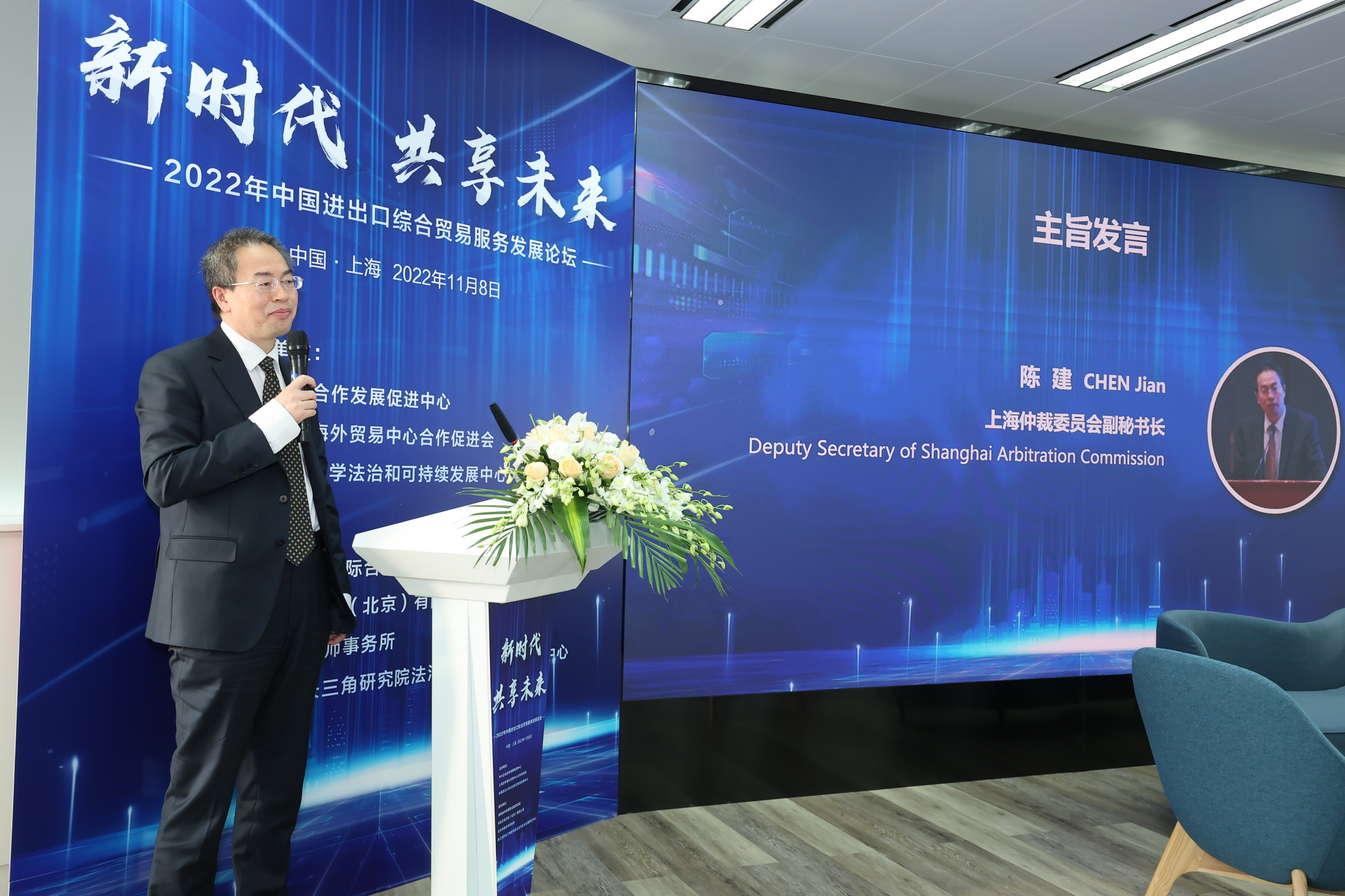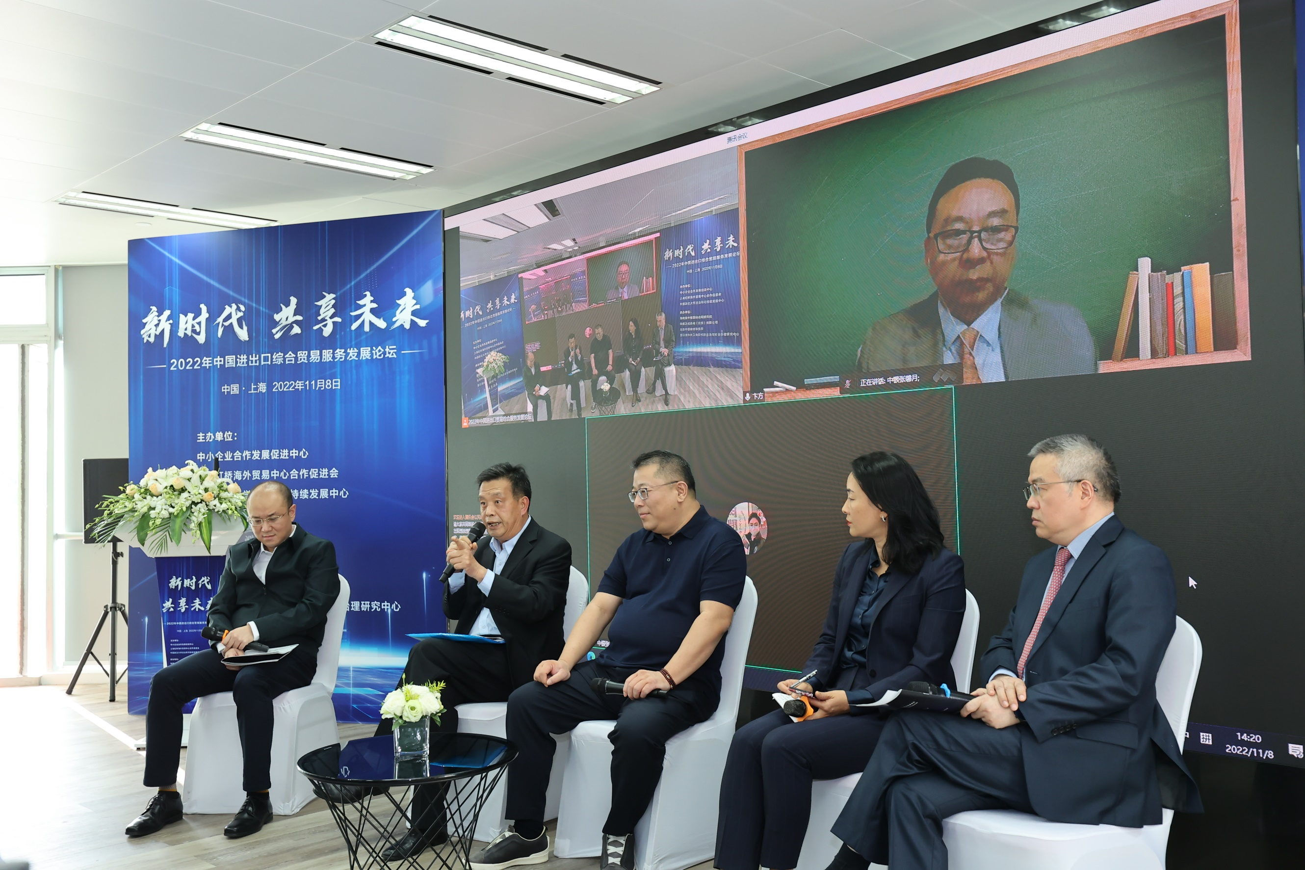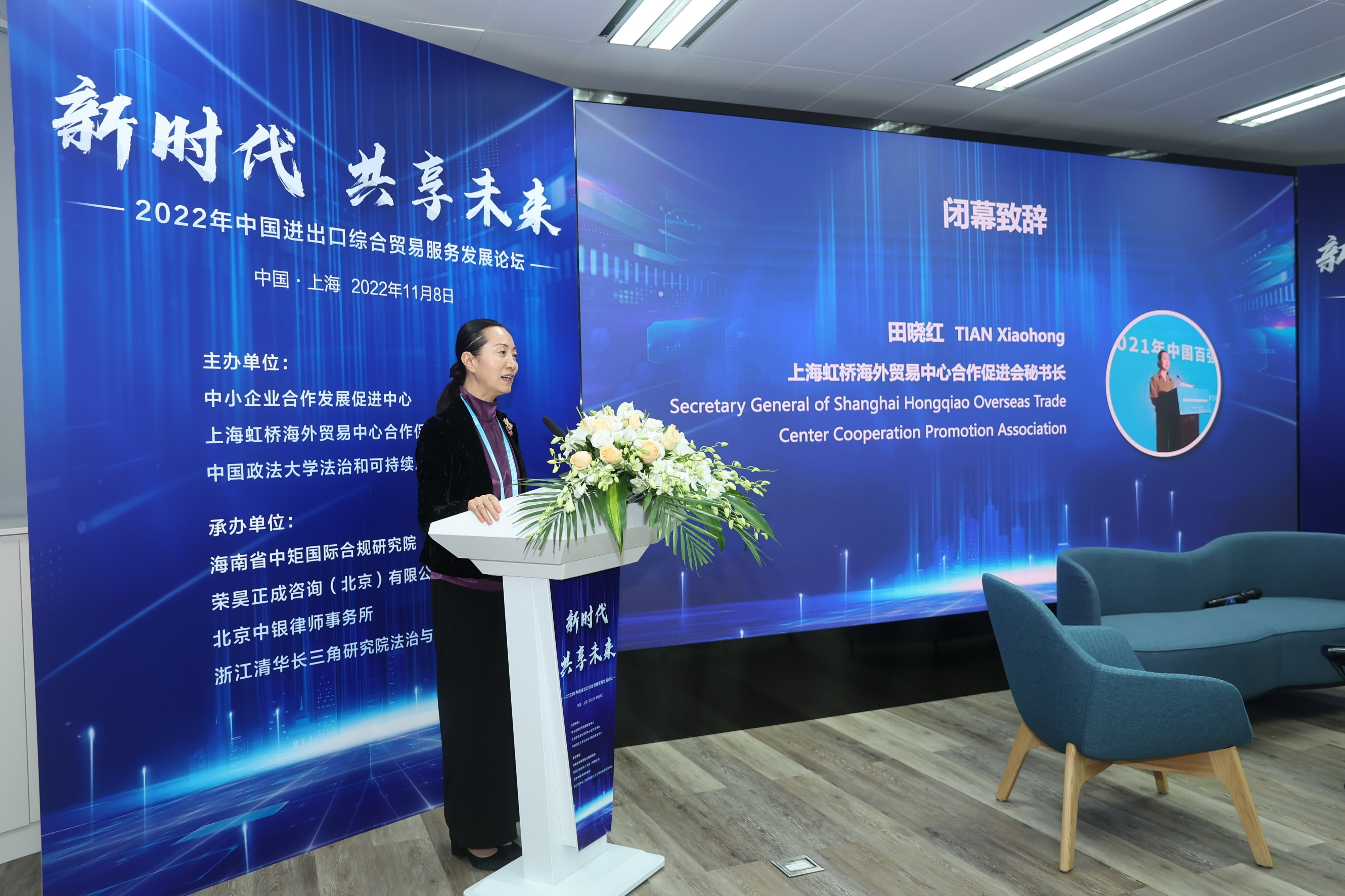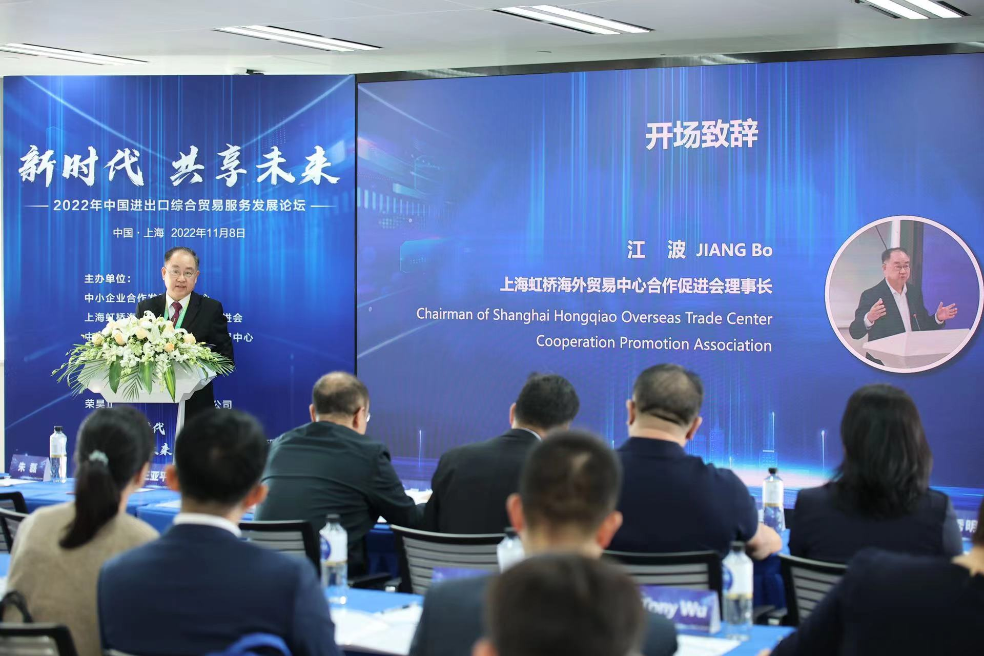 2022年11月8日,由中小企业合作发展促进中心、上海虹桥海外贸易中心合作促进会、中国政法大学法治与可持续发展中心共同主办的“2022年中国进出口综合贸易服务发展论坛”在上海虹桥海外贸易中心隆重举行,政府领导、专家学者、企业代表共同探讨综合贸易服务变化及贸易合规挑战。
