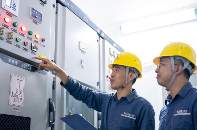 深圳宝安供电局工作人员在欣旺达产业园配电房检查设备运行情况。主办方供图