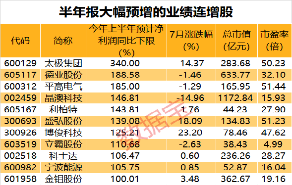 行情上来看,业绩预计连增股本月以下跌为主,平均下跌1.23%,万泽股份、晶澳科技、康缘药业、太极集团7月以来跌幅均超过14%。