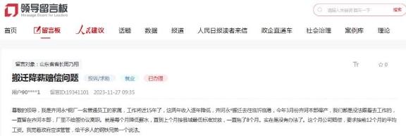 除了被撤销高新技术企业资格之外,2023年11月27日,齐河永锋钢厂一名员工家属在人民网“领导留言板”留言称,永锋钢厂搬迁去临沂临港,今年3月份齐河本部停产,“我们都是没法跟着去工作的,一直留在齐河本部,厂里不给签协议离职,就是每个月降低薪水,直到上个月按县城最低标准发放,一直拖了8个月”,赔偿却要求按前12个月平均工资计算。