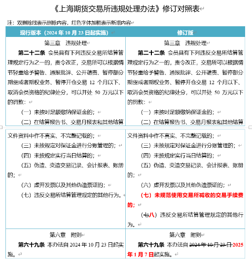 上海期货交易所1月7日也发布公告称,《上海期货交易所结算管理办法(修订版)》《上海期货交易所违规处理办法(修订版)》经上期所理事会审议通过,并已报告中国证监会,现予以发布,自2025年1月7日起实施。