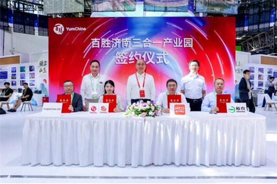 活动现场,济南市贸促会党组成员、副会长滕志超,济南长清大学城管委会副主任宋好修,百胜中国物流总经理韩天舒共同出席,百胜中国供应链投资总监曾真代表传胜供应链管理(上海)有限公司与青岛美可食品有限公司董事长陈红星、北京市裕农优质农产品种植有限公司董事长常希光、丰楷实业发展(济南)有限公司全国市场营销总经理余中明共同签署合作协议,三合一产业园这一供应链新模式拟落地山东济南,这不仅是供应链领域的一次创新,更是产业协同发展的具体实践。