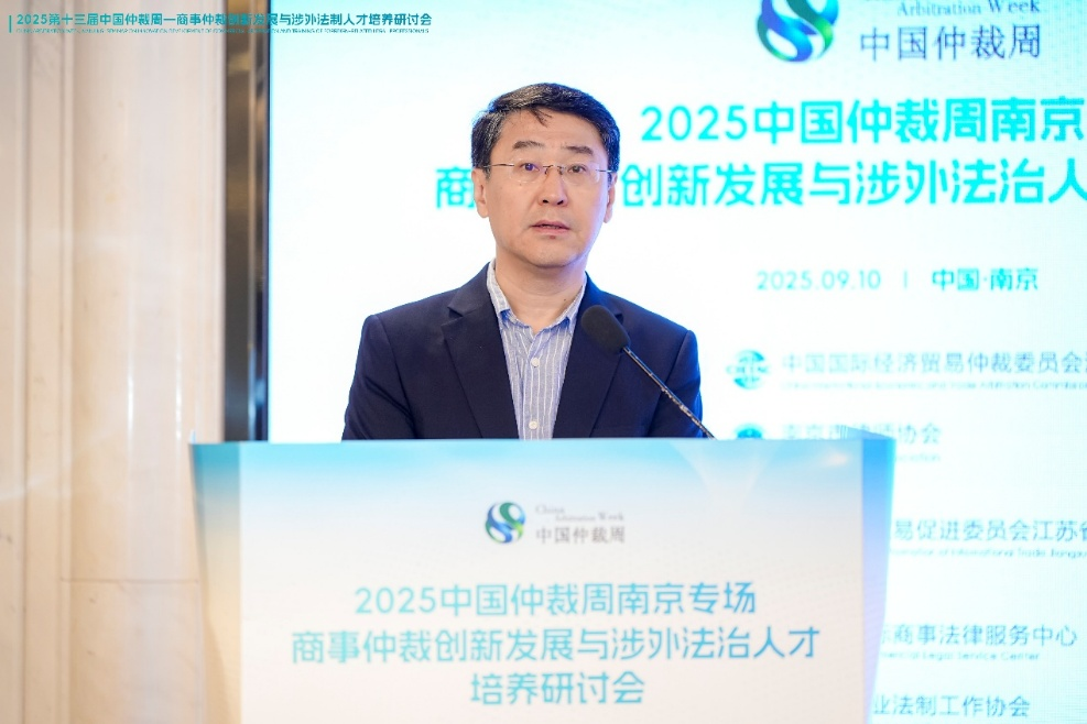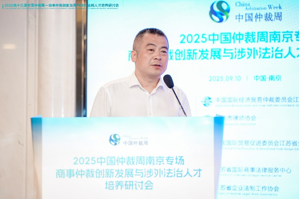 9月10日,2025中国仲裁周南京专场“商事仲裁创新发展与涉外法治人才培养研讨会”在江苏南京举办。本次活动由江苏省贸促会指导,中国国际经济贸易仲裁委员会江苏仲裁中心(以下简称“贸仲江苏中心”)和南京市律师协会共同主办,江苏省国际商事法律服务中心、江苏省企业法制工作协会、南京大学法学院、东南大学法学院、南京师范大学法学院、江苏博事达律师事务所等单位参与协办。