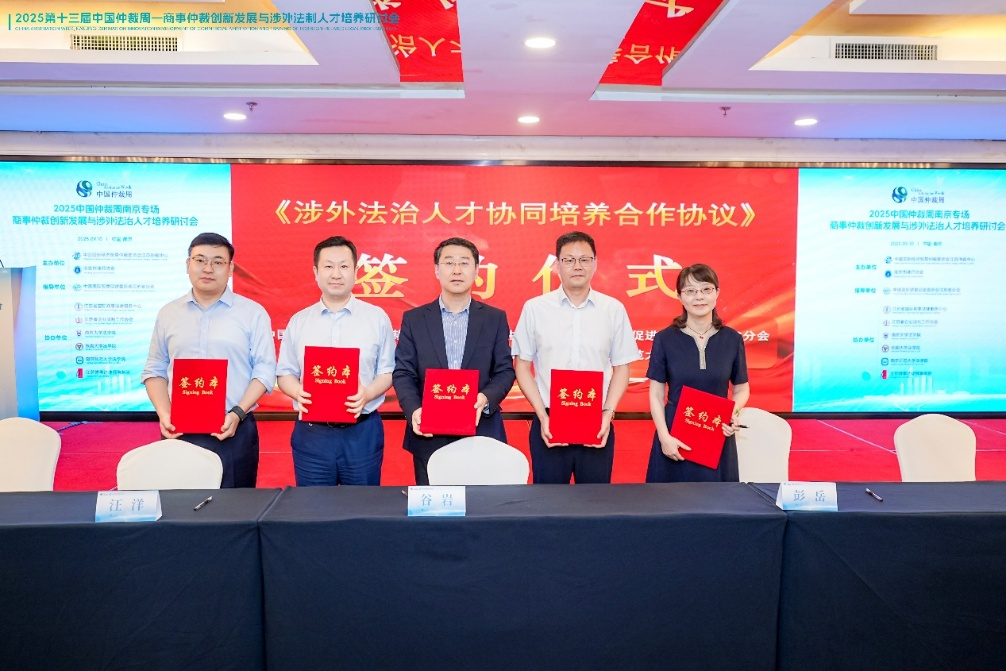 活动中,贸仲江苏中心协同江苏省贸促会法律部分别与南京大学法学院、东南大学法学院和南京师范大学法学院签署《涉外法治人才协同培养合作协议》。