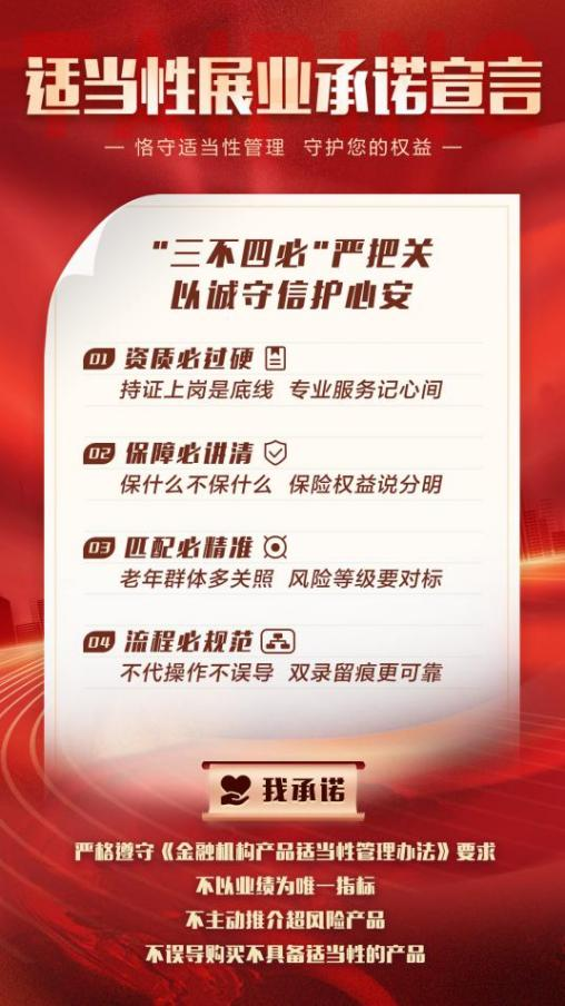 图为太平人寿业务人员“适当性展业承诺宣言”海报
