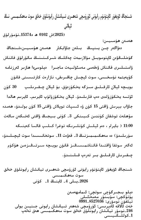 (2025)新0102民初15374号 本院受理原告陈银平与被告艾山·玉苏因、新疆冠领万汽车服务有限公司机动车交通事故责任纠纷一案,因被告艾山·玉苏因下落不明,现已刊登公告。