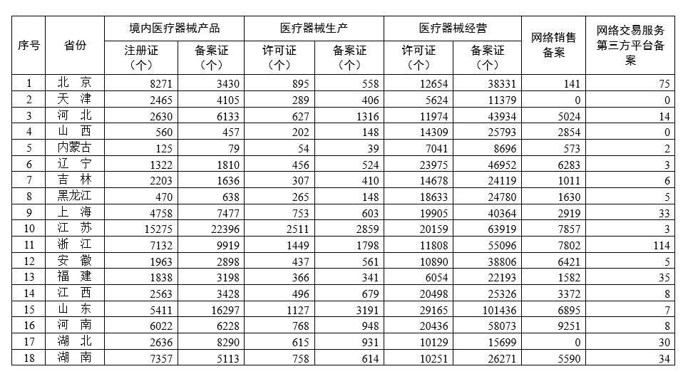 各省医疗器械许可备案相关信息(截至2022年8月31日)