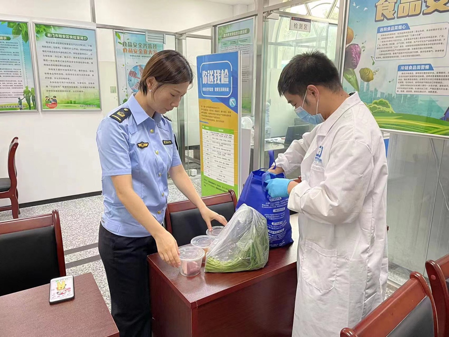 期间,为推动食品安全社会共治,厦门各区市场监管部门则开展了各具特色的一系列食品安全快检活动:思明市场监管部门常态化为辖区内大型商超企业提供每10天一循环送检20批次样品的“你送我检”服务,并对检出阳性的商超,均要求加送同类产品的检测批次,以及时排查风险并对食品安全起到良好的风险预警作用;湖里市场监管部门针对辖内13个城乡结合部开展“城中村”专项快检工作,抽检对象涵盖了监督抽检未覆盖的证照不全或没有索证索票的经营者,有效地填补监督抽检的监测盲区;集美市场监管部门着力打造区级食安教育基地,并把快检实验等带到基地,开展食安科普课题、快检实验DIY等活动,为市民群众带来“接地气”的食安科普体验,力求做好科普宣传、展示形象和推动食品安全社会共治;海沧市场监管部门举办“政府开放日”活动,并将“你送我检”融入活动之中,邀请区人大代表、政协委员及市民代表参观快检室并实地参与“你送我检”活动,使快检成为一个各级部门开放互动的服务平台。