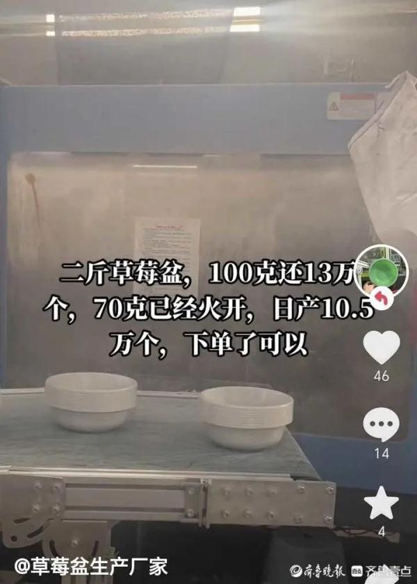 9日上午,记者以做草莓盆生意为由联系到临沂一家草莓盆原材料和模具供货生产厂家。该厂家工作人员张先生说,“现在草莓盆生意挺火爆,想做这个的人不少,这里面的‘门道’也很多。”