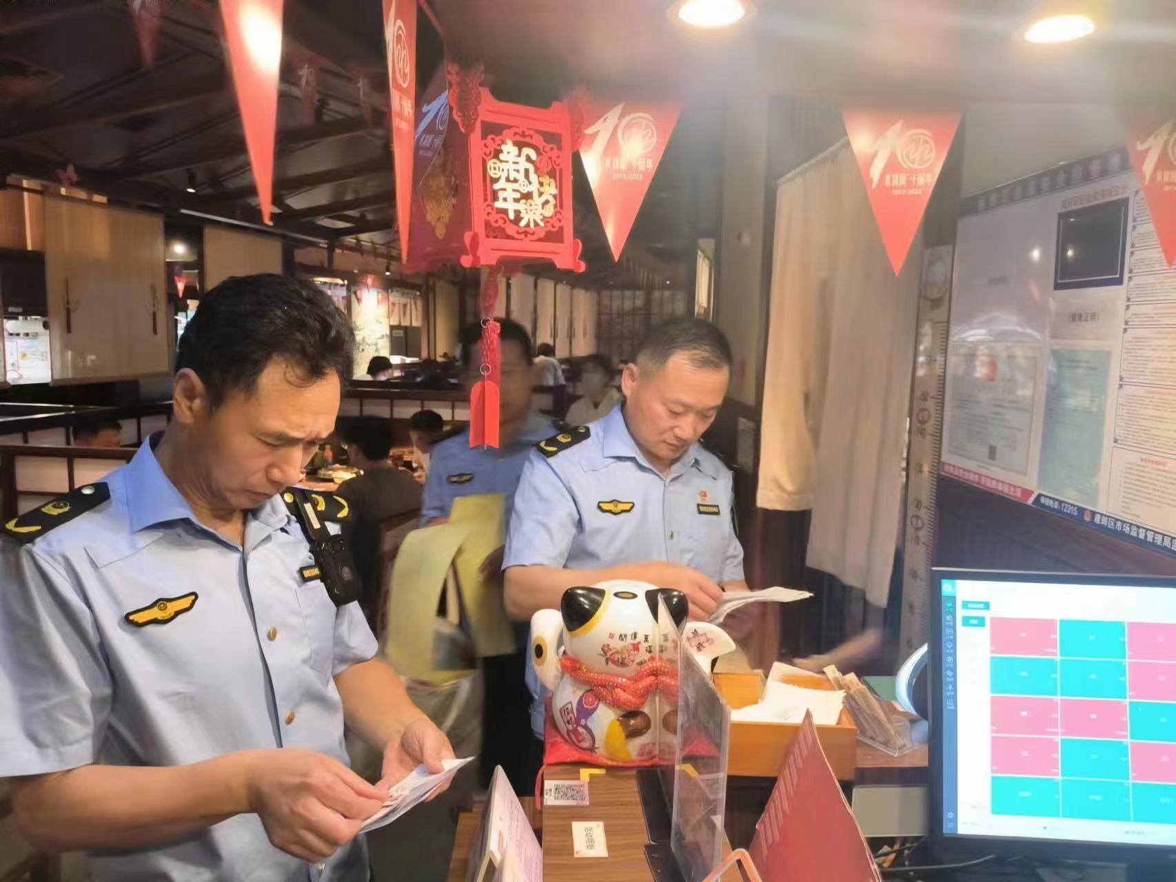6月26日—28日,江苏省南京市建邺区市场监督管理局兴隆分局对辖区餐饮服务单位开展夜查行动。本次行动主要针对人员较密集、商户较集中的大型商场的餐饮店是否存在销售“三无”食品、假冒食品、劣质食品、过期食品开展检查,同时督促推行“明厨亮灶”,落实食品风险分级管理。