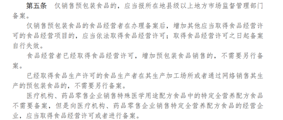 同时,各经营主体也要格外注意,《办法》中不仅对包括特殊食品在内的预包装食品规定了进行备案管理的条款,也明确了设定仅销售预包装食品违法行为法律责任。
