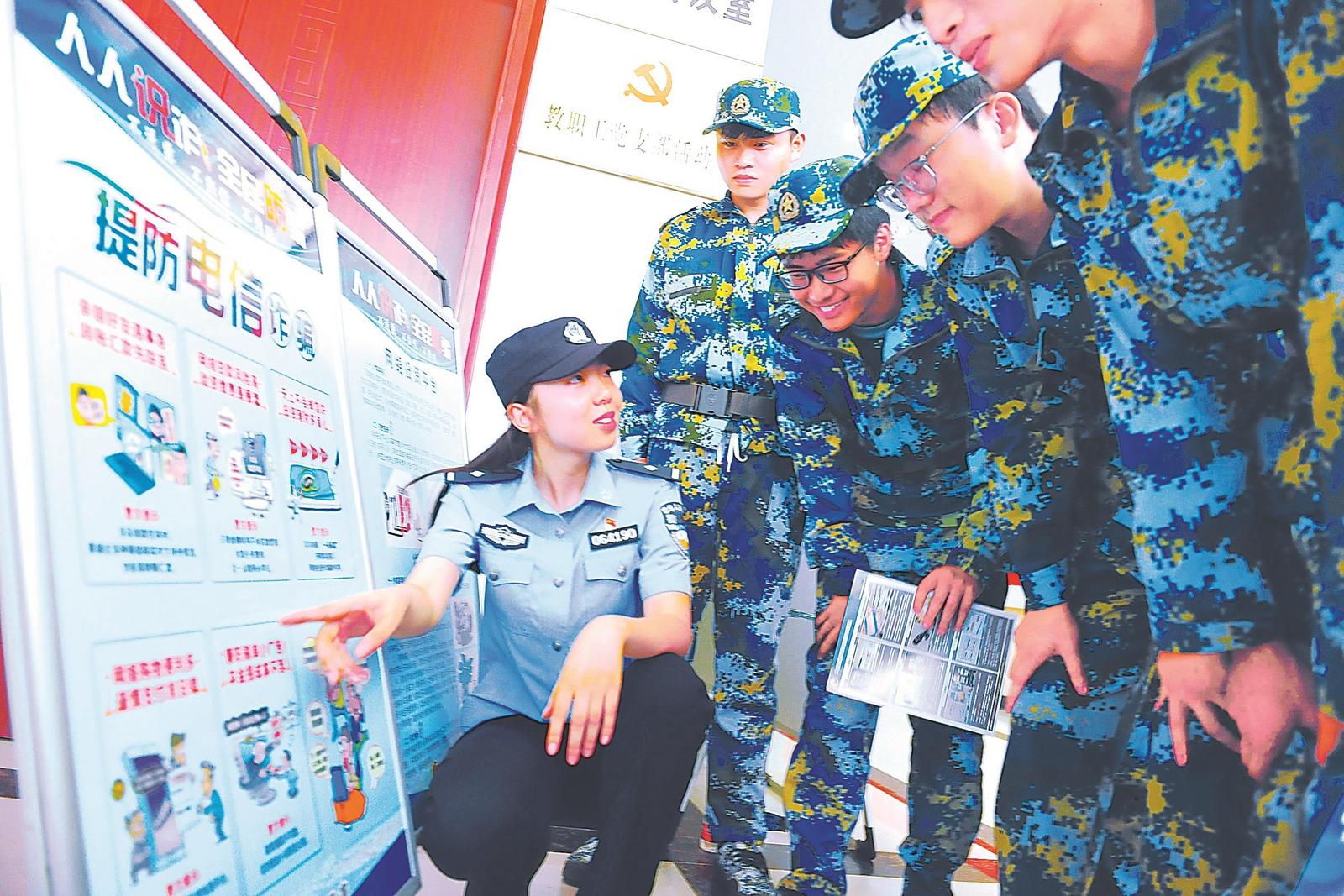 9月9日,巢湖市公安局民警来到合肥城市学院,开展防电诈、防毒害、防交通意外教育,守护莘莘学子安全。 通讯员 杨祖友 摄