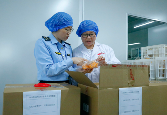 “这个产品的生产日期是11月6日,你们对该批次生产的产品抽检过了吗?”“当天生产出来就已经抽检了,包括我们自己的一个出厂检验和第三方检验机构抽检……”11月8日,在南宁经开区一家糕点生产企业,南宁市市场监管局经开分局驻点监管人员正在对准备发往学青会运动员村的糕点进行开箱检查,重点查看糕点的标签、生产记录等。