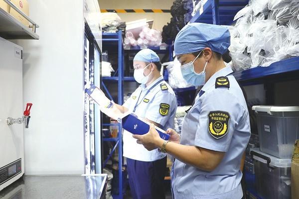 图为执法人员对消费者普遍关心的餐饮企业食品安全问题进行现场查验。何彩萍 鲁利军 李奇璟 文/摄