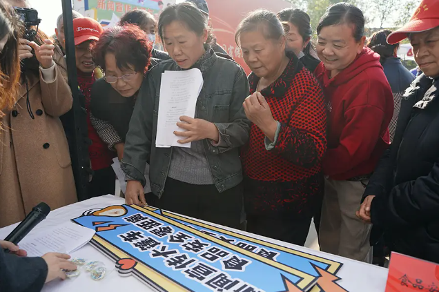 11月21日上午,湖北省“新闻宣传大篷车·食品安全零距离”活动走进武汉市青山区八吉府街道,将食品安全科普服务送到村民家门口,吸引上百名居民参与。