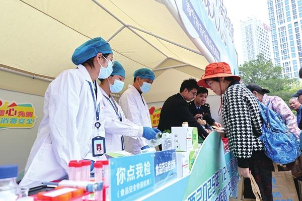 图为相关工作人员正在快检食材。何正君 摄