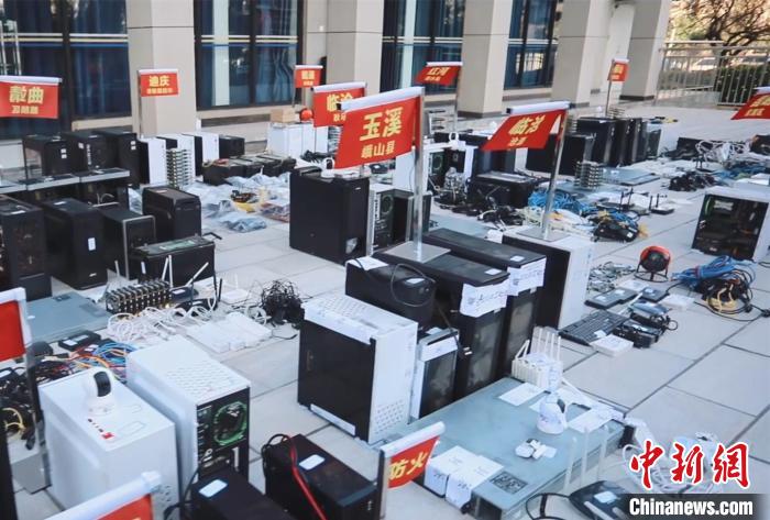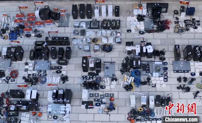 图为警方缴获的智能插座等智能远程监控设备。云南省公安厅供图
