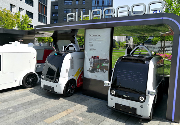 在张江人工智能岛园区内,无人餐饮售卖车、无人环卫车、无人快递配送机器人、安防巡逻机器人等随处可见,一系列无人自主提供服务的机器人围绕在旁,让人仿佛置身于科幻世界,而餐饮机器人售卖的茶叶蛋和热豆浆又会将我们拉回现实世界。