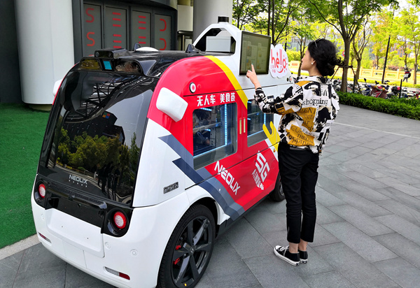 张江人工智能岛园区内的无人餐饮售卖车。人民网记者 孙博洋摄