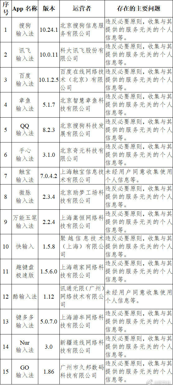 国家网信办1日通报,依据法律和有关规定,对输入法、地图导航等常见类型公众大量使用的部分App的个人信息收集使用情况进行检测,发现搜狗输入法、讯飞输入法、高德地图、百度地图等33款App违法违规收集使用个人信息。国家网信办要求相关App运营者针对检测发现的问题于通报发布之日起10个工作日内完成整改,并将整改情况上报,逾期未完成整改的将依法予以处置。(记者王思北)