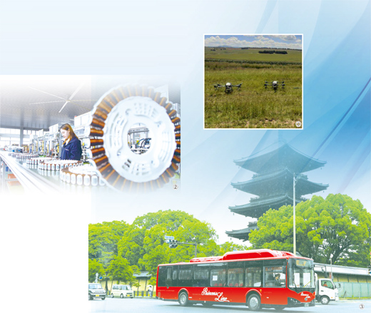 图③:行驶在日本京都东寺大街上的比亚迪电动巴士。