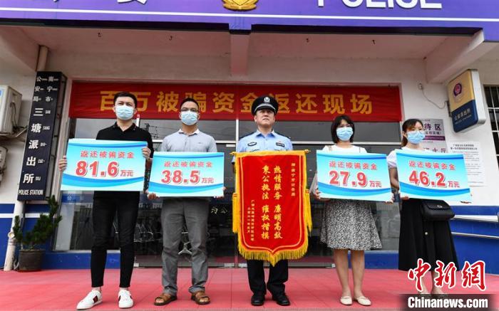 图为警方向诈骗被害人返还了被骗资金 南宁警方供图